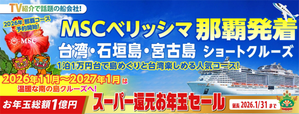 日本発着だと那覇・東京発のMSCベリッシマで39,800円からスタートするショートクルーズもあって、気軽に試せるのがいいところです。